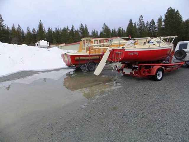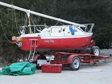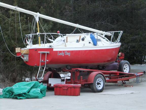 And, just before that, Lady Bug came home for some trailer mods, a rudder overhaul (Again!), motor mounting, a new mast crutch, and a completely different tabernacle.