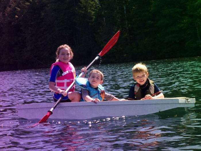 After the sun was all the way up, it got warm out. The children spent many hours paddling Seagull around the Island and playing in the water.