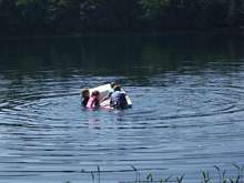 After lunch some of the adults went swimming, Abby followed them in Seagull.