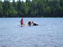 Later that summer Seagull got one more chance to float, for some reason Abby and Nicolas decided to launch her into the smallest lake ever.