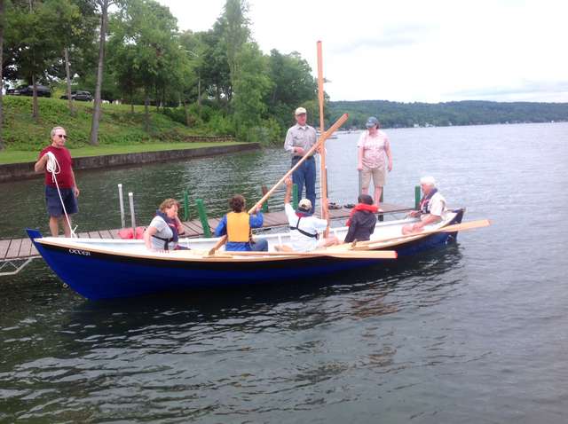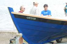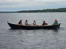 At the Woodenboat show in 2013 I was out rowing the whaleboat minding my own business when this apparition drifted out of the fog. It was sleek and beautiful and rowed by attractive smiling people. I was smitten. I had never seen a St Ayles Skiff before but went home determined to get one for my town.