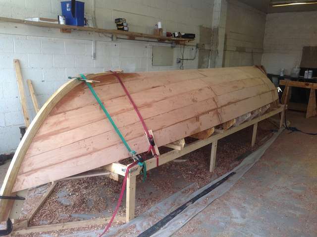 Here is the completed hull. There were cheers all around, and then their faces fell to hear that we were about 1/4 done.