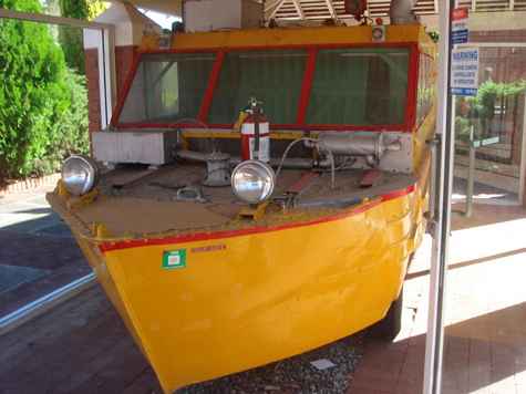 Friend of mine who lives in Perth went by to see the round-the-world amphib and sent me this picture of Halfsafe. I read the original book when I was 13. Apparently the author was really hard to get along with (gossip later from Perth). Note he was an engineer. The couple in the boat next to mine at a Marina on the Tennessee River were from Australia, and the guy was an engineer, so I gave him the book. He was from Perth and when they returned home he ran across the preserved boat in Perth ... seems like his nephew actually went to that elementary school. The book is just a boat nut's dream... he was obsessive about taking the jeep to sea and the book details most of the modifications he made to make it self-contained and hard to sink. He made a fuel tank for extra fuel that rode underneath the jeep, with four indentions to fit over the wheels. When he had pumped out all the extra fuel he jettisoned the belly-tank. Very World War II. The trip from the U. S. to Britain played hell with the hull and there's a picture of him with welding equipment rebuilding the thing in England.