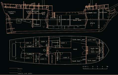 For adventurers seeking a closer insight of the life aboard such a historical vessel, it is also possible to book a cabin or a bunk on La Grace and take part in AEC events aboard this beauty. She offers 6 cabins in the aft and middle of the boat. In each cabin there is a double bed and over it a third bed, making them suitable for two adults or for a family with one child under 15 years of age. There are further 8 bunks in the fore part and 4 more in the mess room.