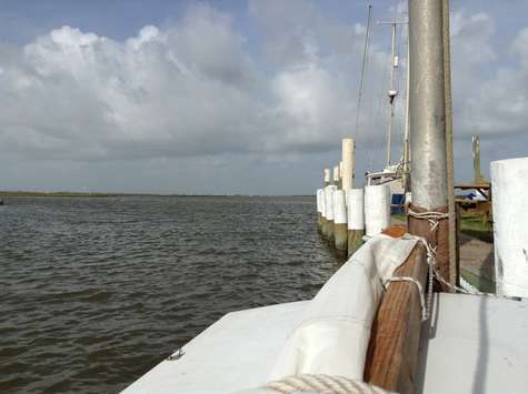Another first, down from Sargent there is the last swing bridge I was told in the state of Texas. My hand held radio had ceased functioning on day one. I approach a power boater who informed me he had just radioed in to open, follow him, he says. Well they don't open the entire swing bridge for small power boats. They had installed a draw bridge at one end, 14' wide. The fellow proceeds to enter and looks back motioning me to follow. I point to my self, the the raising draw section, and he nods yes.