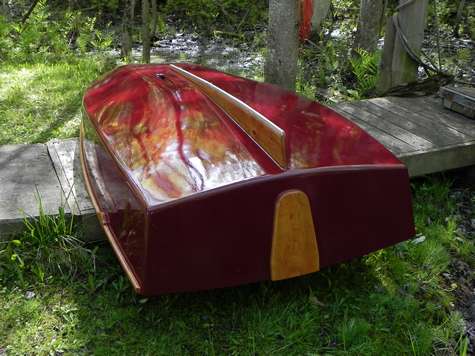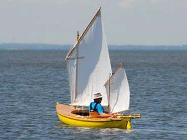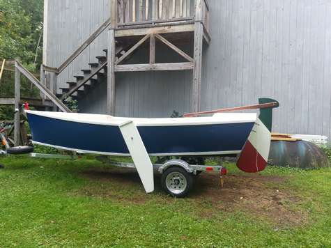 A three sheet dingy I designed and built 15 yrs ago to row/sail/motor (electric with battery in the bunk). Here are a couple of pics of the rebuilt dingy. The first tests went very well. Ben Hockley (co-op student) helped build Dianne took the pictures. I do need Dacron line to tighten the sprit but she sailed well regardless. A kayaker saw us testing her, then passed us on his return as we (three large persons) motoring up stream. he commented that it does everything, asking for a contact number and touched base with me that evening wanting plans! They are not ready yet (life's happening) but I will get to it. As I'm further along I'll write it up for you.