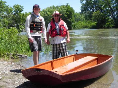 Here's some pictures of the first day on the water with my favourite sailor in command. She rides a little high but will last him for a long time as he grows. I was pleased by the balance. The hull is a little deep for the sailor so I've made him a removable seat and bought him a stadium seat to get the right height for paddling. My own design. In the end it all came together well and the little lad, my grandson, is thrilled.