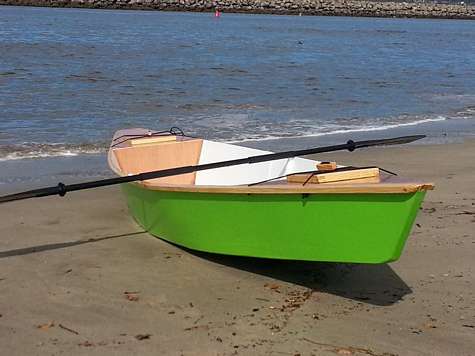 Here a recent launch of mine. Plans were from Larry Westlake for his "Brightsides" his variation on the BC Handliner. I roughly followed his plans and directions, although this one came in a few pounds under his estimate. A bit easier to pick-up top without floorboards and only one of three thwarts. I began building in early August this year and first launch was mid-October when I found a small leak through the port side lower chine. I pulled it out and applied two more coats of graphite epoxy, plugging the leak. Its currently tied up in the Santa Cruz, CA Small Craft Harbor and is not leaking.