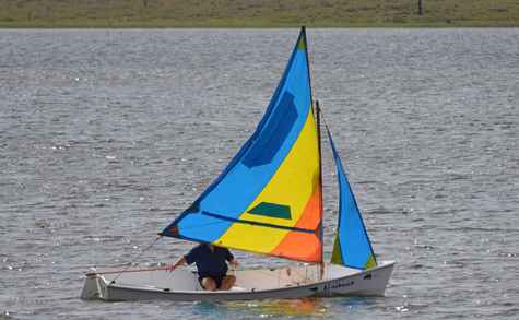 I recently had the opportunity to try sailing a Flint with the gaff-headed sloop rig which I include in the plans as an option. As far as I know, this is the first example to be tested, although there have been a number of other rigs used by people in Australia and the U. S. The sails used were homemade by an absolute first-timer, and were hand sewn at that! I had spent quite a bit of time helping the guy set up the rig, and had gently suggested that he should not expect too much in the way of up-wind performance. Anyway, on the first trial I took the boat out by myself initially, and then with both of us on board. The leech was a bit floppy, but the boat performed way beyond my best expectations, and I came home on a great high.
