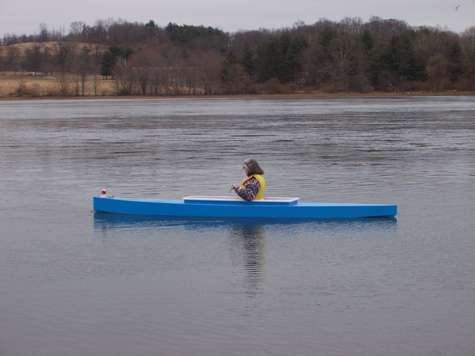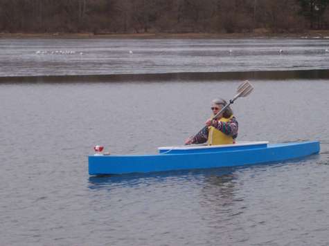 I have brought a brand new boat (or two) to each of the last three Eastern Messabouts. The build usually starts in December with first splash in late February or early March; my wife, Margaret, being rather less massive than myself, acting as test pilot. If it doesn't sink with her then I'll try it. Last year Duckworks published the first splash of my Michalak Vireo12.
