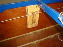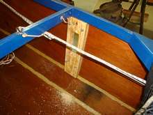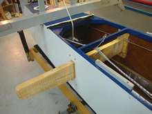 Once the glue on the starboard side 1x4 piece has set, the hole for the 2x6 motor mount board can be cut out. |