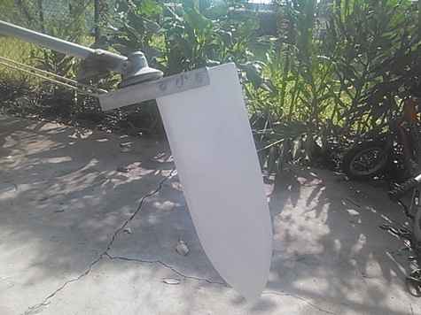 A fun and simple sculling oar I built from angle aluminum, plywood and a string trimmer shaft. It's mounted in a clamp style oarlock with a motor clamp bracket from an old 4 hp outboard. As you can see in the video it works quite well. The original mounting bracket was made from a cypress board and a wheelbarrow axle mount held with C clamps.