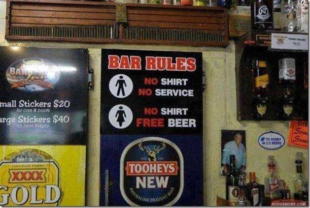 We have some new bar rules and this does apply to you Stan, leave your shirt on. I'll be the first in line to enforce them when any of you wenches come along.