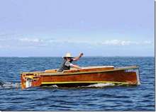 Kevin Lott is still working on his Cortez melonseed, I'm tempted to make another one myself just to get to play with the smooth hull. I sent this picture of me in Laylah to remind him of what he'll have when he's finished. These little things are so much fun. Notice the lack of reef lines on this new sail, they just screw up the shape.
