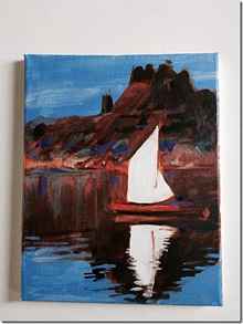 Annie Holmes from San Diego sent this. She says that if she can't play in sailboats anymore she can at least paint them. That sounds like me, I'm getting so I'm not nearly as agile in small sailboats as I once was. I can't paint so what'll I do. That's why I decided to sell my Core Sound 17 to a good home. I gave it away for the same thing I paid Dr Jose and I interviewed the prospective buyers to make sure they'd love and use it. It went to a wild couple who'll sail the hell out of it. The better half of the couple is a doctor; I can see her heeling it way over and yelling at the wind just like you use to do Jose.