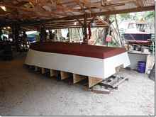 One last thing; one of the bums who stops by for a cool one once in a while is the master rigger for Panga boats. Panga's are the ultra seaworthy boats used all over the world by everyone from native fisherman to fishing guides. The factory has just started offering the bare hull for a 22 foot world class boat for $6000 at the factory in Sarasota, Fl. If you're looking for a boat like this it's worth a thought. My 18 foot hull will cost me half that much and it's not nearly the hull this is.