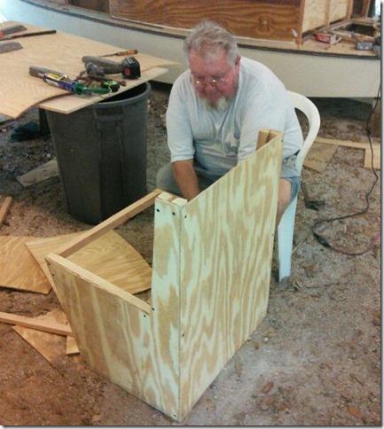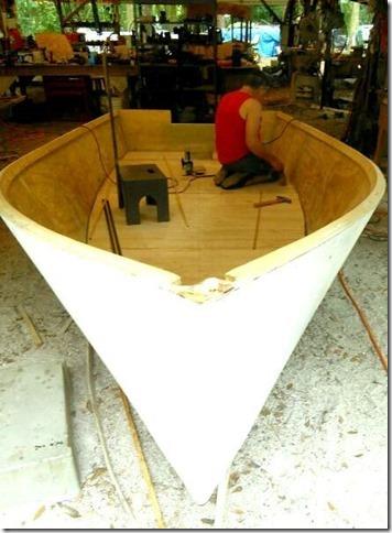 My new boat is coming along. Steve got me glassing in the floor or deck or whatever they call the things you walk on in boats.