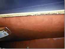Another water paint report. I pulled Helen Marie out last week to check things and here's a shot while she's still wet. I reported about three month ago about how the new Pettit water based bottom was holding up. All I did was wash off the scum line and put it back in. Here it is again, NO barnacles at all, none. What you see here is just easily washed off slime. I just gave her a quick wash, rolled on a quick touch up from where I run aground and put her back in. This stuff is super easy to apply, it's as thin as water.
