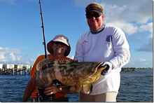 Fishing anyone? Kayak Kathy and family went out with a charter Capt. at Boca Grand. That's a pass from the Gulf into Pine Island Sound about fifty miles south of me. They started out with these little Goliath groper caught using sting rays for bait.