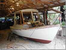 My fast commuter is not coming along worth a dam. After the first couple of week and the hull was done and deck started I was ripping right along. The cabin went on pretty fast but then I had to start painting; a screeching halt occurred. Water based paint WILL NOT dry when it 100% humidity, no way, no how. And epoxy does strange things also. You should see me out there with a hot air gun trying to get something to dry so I can get on with it. I can think Pat Johnson for the inspiration for his boat, he's a man who knows what he wants also.