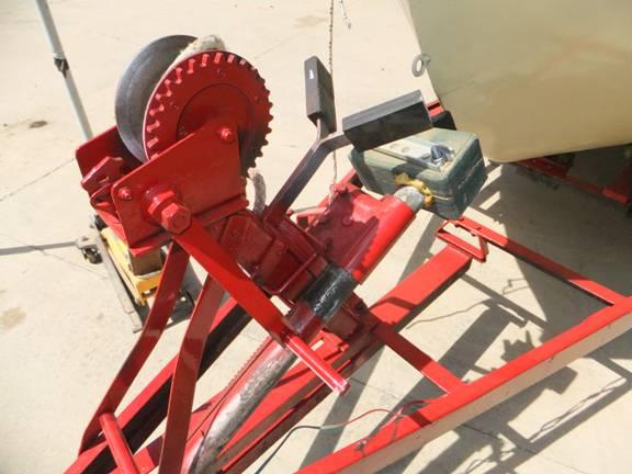 Behold. The non-patent pending little device each and every one of you will want for your own trailer(s). Simply put a shallow ¾" socket and ratchet handle to the specially mated Nylox nuts and lock washer on the once-crank handle shaft. About a 10 degree separation among the rival trailer tongues will result in about an 18 inch drop of the once-aloof sailboat hind quarters. And, taa-dah! She just slides into the water like a wheel barrow load of those bovine trail markers I was talking about.