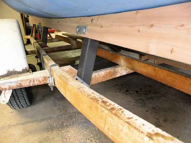 The supports for the bunks came from pieces sawn out of base frames from a HF shop crane that got expropriated for use on Alice the Tractor. And, a lot of the “official” trailer parts have come up surplus from any and all of the half-dozen boat trailers that wandered into my cross hairs and got re-done, re-purposed, and ultimately sent away with boats of similar etiology. As a result, the leftside don’t always exactly match the rightside.