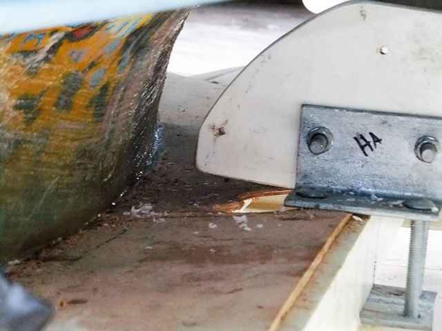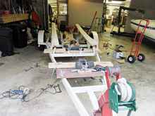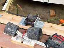Each one was dreamed up to guide and support the boat while riding around on the trailer, and while coming and going. This bottom picture was supposed to be the top of the heap. Rollers that would progressively align the foil-shaped stub keel into the center line. Things were looking real good. Until.