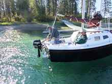Next stop - quite unplanned - was that puddle from long ago. Loon Lake. The ramp was pretty deep. The narrow channel out to the lake, not so much. I found myself anchored with the prop down. So, I paddled “Mobius” the hundred yards or so out to the lake.