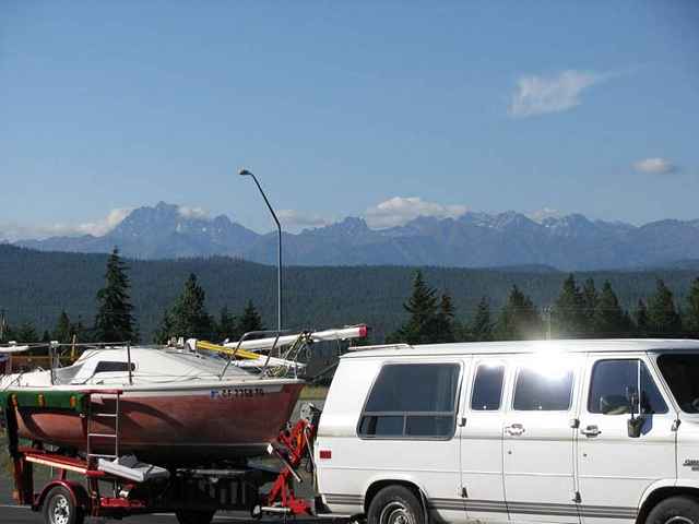I parked the rig out back with the log trucks. California plates and hull numbers. Red sailboat, and a big ‘ol Chevy van. As I went in, the place was full of people - about a 5-table joint - apparently coming from church. Since most everybody seemed to have their “own” table, I took a “single” one in the corner. By the back door. The waitress was obviously busy, and steamed by me several times without stopping. Finally, I got eye contact and she screeched to a halt in front of me. Somewhat surprisingly, she blurted out, “You want something!?!” I answered that I would like to order breakfast, to a quick rejoinder, “Well, you hafta’ ASK!!” Things deteriorated a bit more, when she asked me if I wasn’t the individual towing the sailboat, now out back of her establishment. Whereupon.