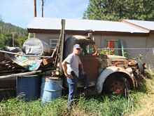 There’s this ’59 Chevy El Camino tail gate and tail lights sticking out of a garage door. Just across from where the highway makes a hairpin turn. Right in the middle of town.