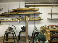 Additional wood storage will go up on the back wall over the radial arm saw. Just as soon as the pony express brings my Rockler order, that is.