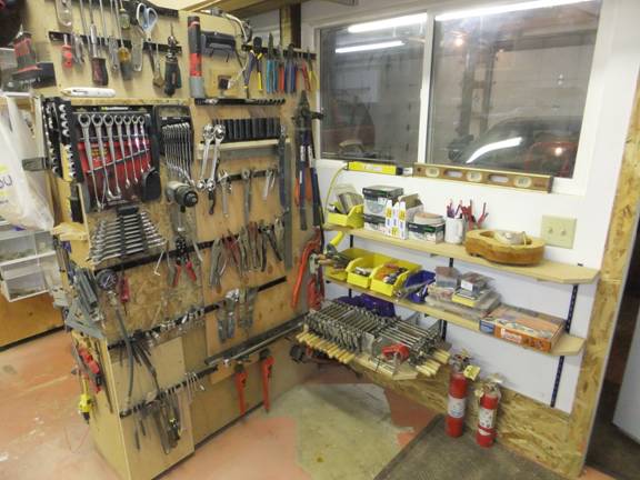 Most of the regularly looked for mechanic’s tools are all at-the-ready, and by the garage door.
