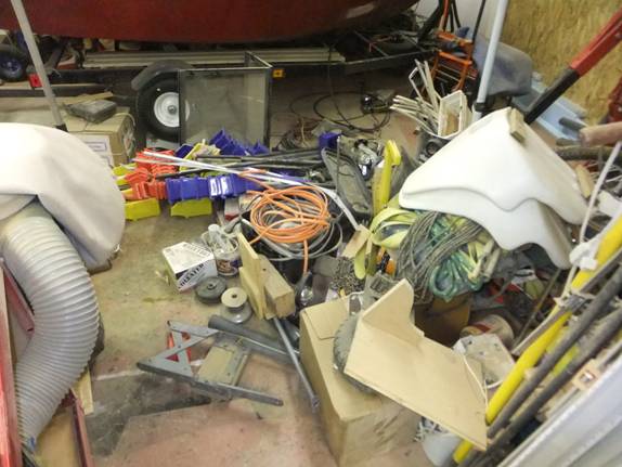 It’s inevitable that stuff will grow around the perimeter walls of any shop I occupy. Sort of like a bath tub ring. Pieces of plywood, chunks of logs for carving, outboard motors, even paint cans; and every now and again, this stuff has to be “brought under control.”