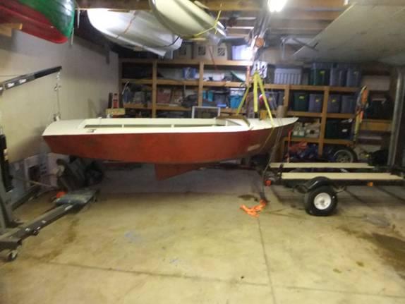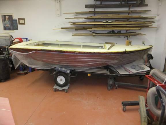 The boat scheduled to go on this almost-here "Damn the Drizzle' cruise over in the Puget Sound country got hauled home from storage, lifted off her trailer, and rolled into the shop on that veteran, shop-worn, building cart.