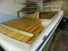 The building guys got a whole 'nuther boat put together and loaded. That would be the decked-over runabout, "Strumpet."