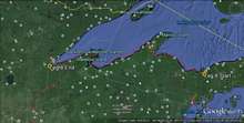 And then we’ll head westward along the southern shore of Lake Superior, cutting through the Keweenaw Waterway to avoid a long, exposed trip around the tip of the Keweenaw Peninsula: