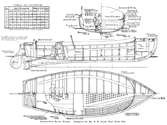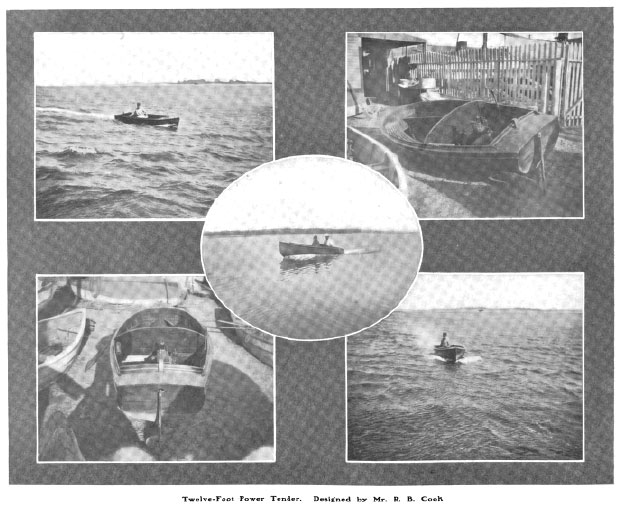 The accompanying plans show a 12-foot power tender designed bv Richard B. Cook and owned by Mr. Nathaniel W. Littlefield of Central Falls, R. L, who is using the boat as tender to a 38-foot yawl, which has no auxiliary power.