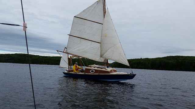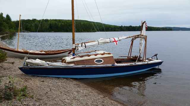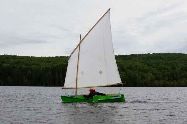 Jamie comes from the Ottawa area – we like him anyway. He brought a skiff that was designed in the late 1800’s. The plans were made available through Popular Mechanix – he made a plywood version and did a very nice job of it. This boat put me in mind of a Michalak Mayfly. In fact Jamie made his own lug sail from Jim Michalak’s design and it pushed that boat around very well.