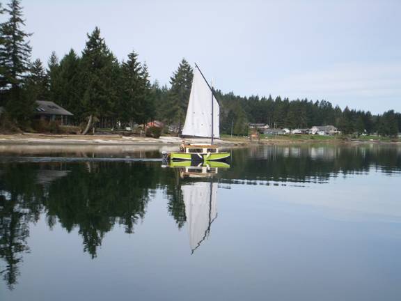I was sitting in a truck park someplace between Vantage and George. The wind was howling, and my little wagon train was bucking and jouncing on its springs. I had my last pair of almost-dry socks on. Willie and Waylon were serenading me on a small town country oldies station. I was down to a couple hundred miles from home on a week-long, 850-mile odyssey. Just about everything about this trip had gone wrong, counter to the plan; even the weather man had got just about every prognostication wrong. I had serious mechanical troubles that took a serious time delay and serious cash to remedy. It had rained an inch over the prior record for that day, in a place that is just about the rain capital of the country. The light winds forecast had manifested into a maelstrom against the ebb tide. It was dark, cold, and windy up there on the back side of the Cascade mountains. Unless I wanted to dig wet sails, a clammy sleeping bag, sodden mattress, and whatnot out of Lady Bug's cabin up on that rocking and reeling trailer first; I was gonna' have to settle for the ramen noodles and instant coffee I could lay my hands on, in the van.
