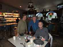 It took very little to convince all hands that there are better places for a gam than a very-rainy launch ramp parking lot. Kurt knew about a roadside bar 'n grill someplace between Harstine bridge and Shelton. And, after breakfast, we followed him through the muck and flotsam about another 30 miles to his shop in Olympia. And, that was well worth the trip!