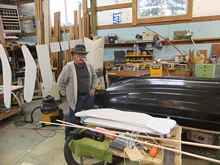 In more or less continuous production since 1965, the little Minto dinghy is now in the capable hands of her fifth artisan. Kurt also repairs big boats and builds the more eclectic craft in this sawdust palace. What a grand place to turn trees and polyester into works of art, huh?
