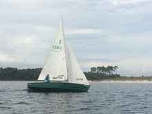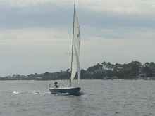 After a few hours, the Santa Rosa Sound widens up and the breeze filled in to a steady 10+ knots.  Bandit was cruising along wing & wing at a steady 4-5 knots and slowly but surely, faster boats began to overtake us from astern.