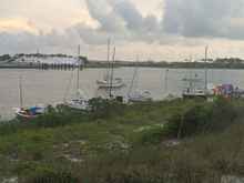 At midday, I was nearing the Navarre Bridge and I could see several other boats making a beeline for “Juana’s”, a well-known beach bar at the foot of the bridge.  Lured by the thought of lunch and a cool beverage, I followed in kind.