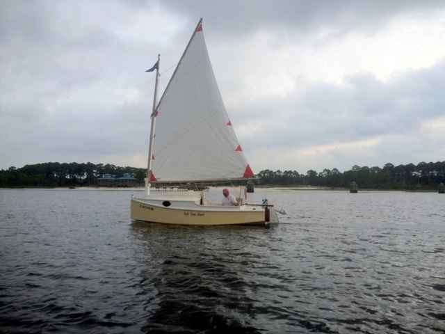Refueled and refreshed, I departed Juana’s and continued my journey. The wind had veered SSW and I was able to comfortably hold my easterly course without the need to tack.  It was a more or less relaxing sail except for the frequent sounds of military gunnery exercises coming from the nearby Elgin Air Force Base to the North.  Larger, faster boats continued to pass me as we continued east, giving me regular opportunity to exchange greetings.