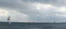 I pushed off the beach at about 7 a.m.  The wind was coming more or less from the east so I began tacking up the intracoastal.  I was pleasantly surprised by how high Bandit could point and I began to pull away from several other boats as we climbed to windward.  After a couple of hours, I reached “The Pavillions - a group of public beach shelters featuring restrooms and cold water showers.  De-salted and refreshed, I continued to tack up the sound.