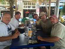 At a quick refreshment break back at the Pavillions, Scott Widmeir suggested stopping at Pensacola Beach for lunch.  He didn’t have to twist my arm much.  I chased him down the sound and by mid-day we were arrived at a beach front bar known as Flounder’s Chowder House.