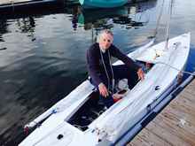 John on the launching beach with Thang. Not sure when this was taken, From the Shadow, it would be Friday afternoon. He eventually wound up behind John Bell's Bandaloop, so he must have moved it from here. |
