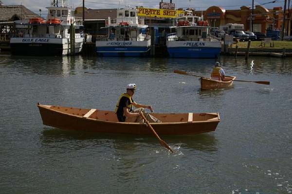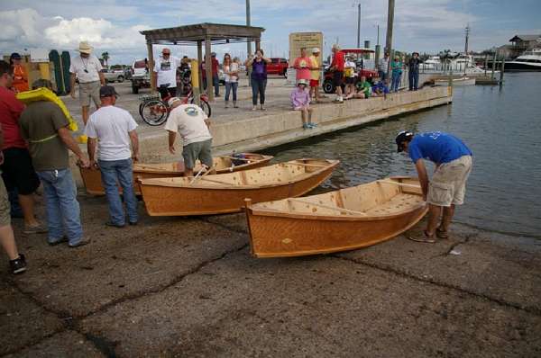Port Aransas is a lovely little resort town that stands as sentry between Corpus Christi Bay, Aransas Bay and the Gulf of Mexico. Catering to the beach crowd, the fishing crowd, and the beach fishing crowd, life in "Port A" was altered slightly during the weekend of October 17-19 for the first annual PlyWooden Boat Festival. Now, to be sure, plywood boats are NOT a novelty for Port Aransas; this sleepy little city that seems to have as many golf carts running about as it does cars has been spreading its wings over the Farley Boat Works since 1915. Farley developed regional fame after WWII when they began producing yacht quality fishing boats which incorporated the then new material of plywood. By the sixties, Farley was fashioning even the hulls from plywood making boats particularly well-suited for the area around Port Aransas. Holding a plywood boat festival in this town was a nobrainer!