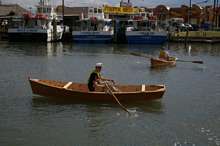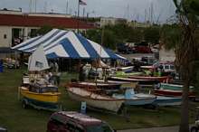 Against this background, and at nearly any time during the festival, were talks being offered by designers such as John Welsford, Mik Storer, Jacques Mertens and Richard Woods, builders such as Marty Worline, and authors such as Tom Pamperin. One could row around the harbor in a couple of boats available for that purpose. One could catch tours of Farley Boat Works and the Port Aransas Museum. One could take the little ones by the Children's Activity Pavilion where young people could build a shrimp boat, an oyster boat, have their face painted (by Terri, ridiculously