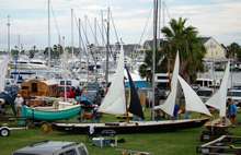 My wife, Kristi, and I were on the fence whether to take "Goat," our Goat Island Skiff (GIS), to the first annual Port Aransas plyWooden Boat Show. It is, after all, a 1,200 mile haul from our home port in St. Petersburg, FL. Then we found out that Michael Storer, the designer of the GIS, had flown from the Philippines for Sail Oklahoma and the Port Aransas show. What's a mere 1,200 miles in comparison? Decision made, we hitched "Goat" up to the Fit and made the trek. We're really glad we did.